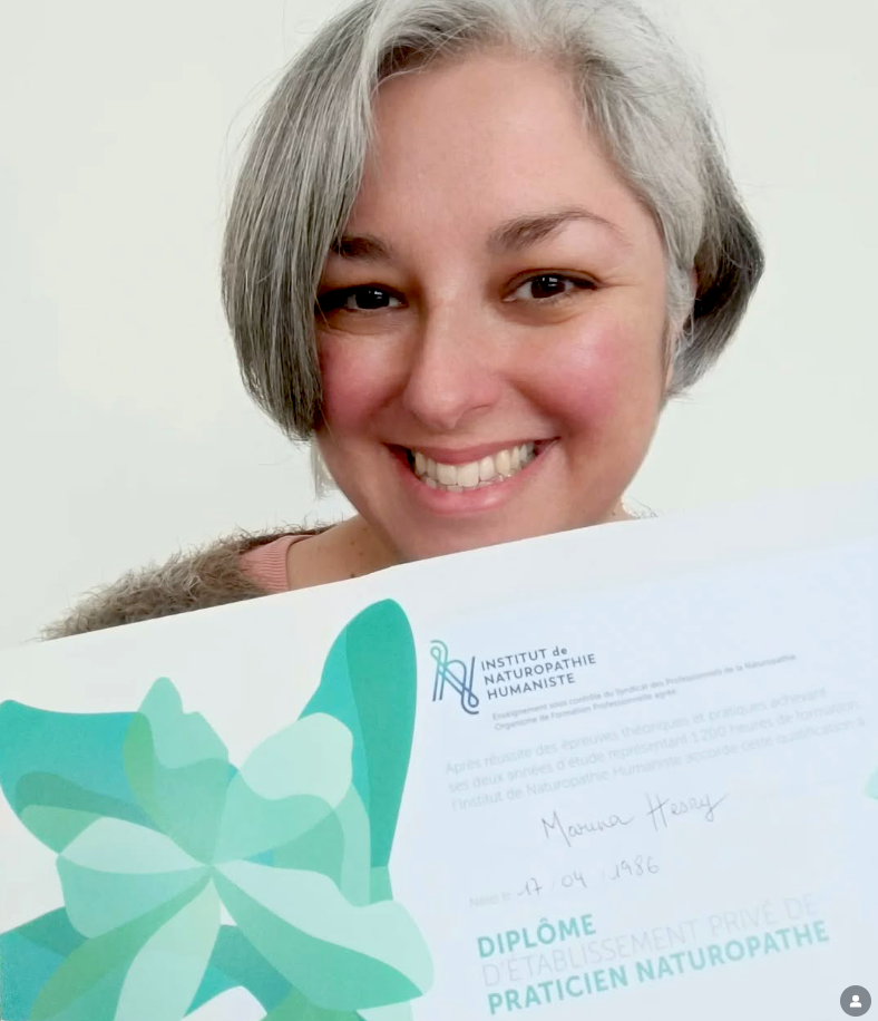 Marina Hesry découvre la naturopathie après une maladie chronique qu'elle juge mal prise en charge par la médecine conventionnelle. Elle commence son parcours par de nombreuses recherches personnelle de solutions, inspirée par des comptes de naturopathes comme ceux de Manon et Julie. Un licenciement économique en 2022 lui offre l’opportunité de se reconvertir. Grâce à sa ténacité, elle obtient le financement intégral de sa formation par Pôle Emploi, un processus complexe qu’elle mène avec détermination.